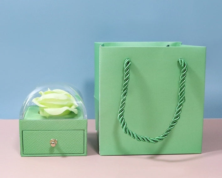Elegante scatola decorativa con rosa stilizzata,un pensiero romantico pronto da donare.