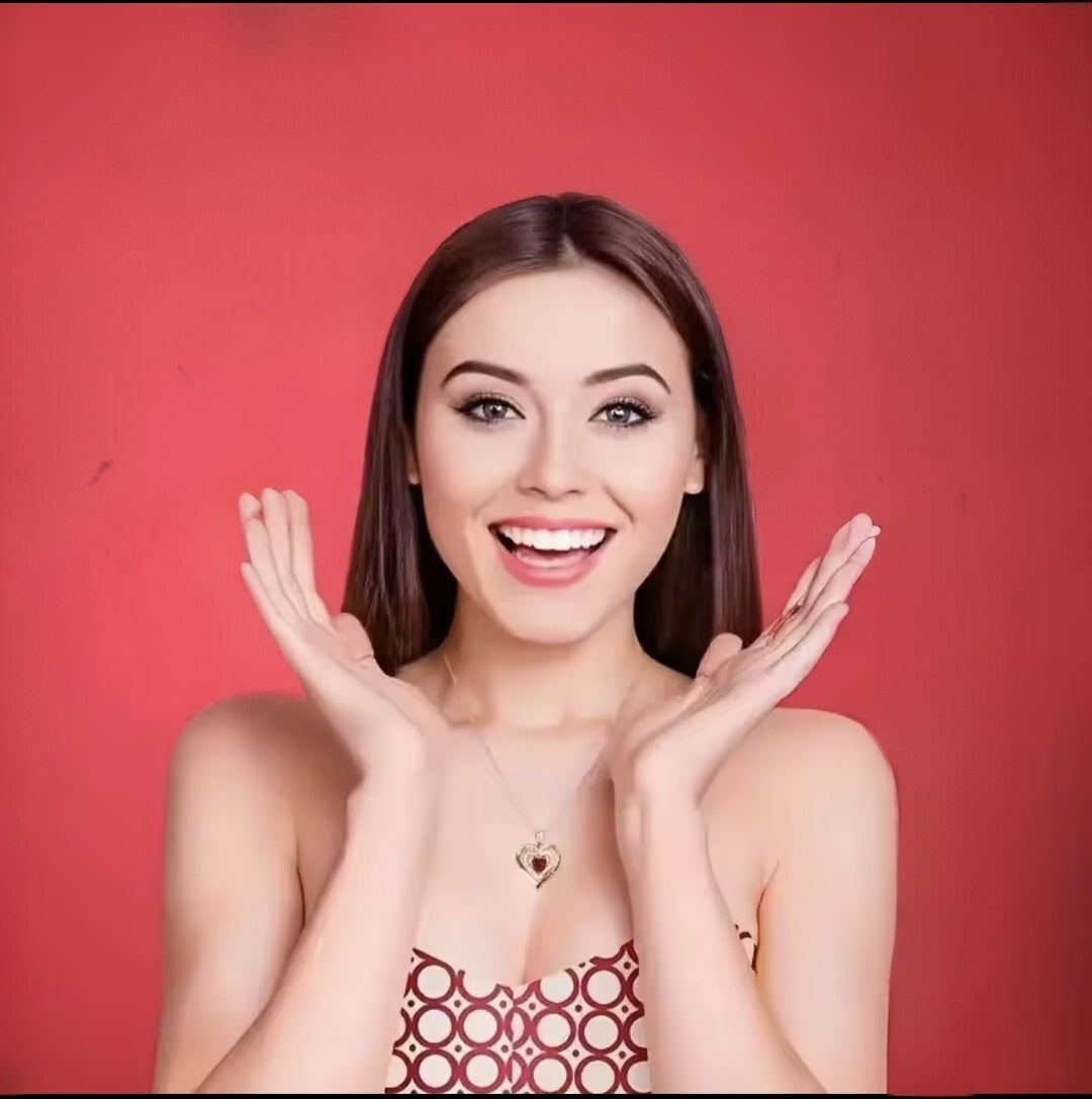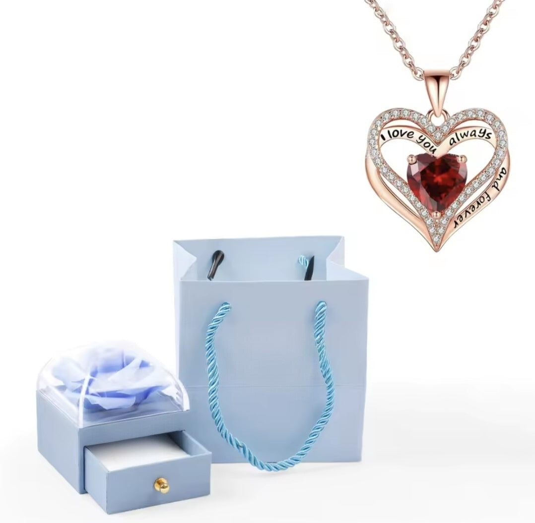 All’esterno, una rosa stilizzata: simbolo eterno dell’amore che non appassisce mai. All’interno, una collana preziosa con ciondolo a forma di cuore, custodita come il sentimento più importante.